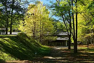The museum building was designed to blend in with the natural surroundings of Karuizawa City.[2] The sculptures in the garden were designed by Isamu Wakabayashi.[5]