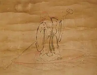 It has sometimes been misconceived as purely native Japanese folklore and superstition, particularly by commentators of the netsuke craft art, since the shōjō is a popular subject for these carvings.[3][4] Though the conception of the shōjō as an alcohol-loving fairy living in the sea may have passed into folklore,[4] it has its antecedent in the medieval literature or theater, namely the Noh play Shōjō, which is set in Ancient China,[5] which in turn derives from the Chinese counterpart, xingxing: