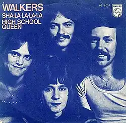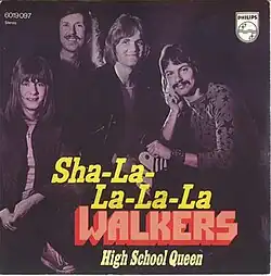 "Sha-La-La-La-La" is a song by Danish glam rock band Walkers. The song was co-written by band members Torben Lendager and Poul Dehnhardt. It entered the Danish charts at number eight in the last week of March 1973, and peaked at number two after three weeks, after which it disappeared from the charts. The song achieved worldwide exposure after being covered by Dutch Eurodance group Vengaboys.