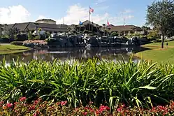 The Shades of Green resort, originally owned by Disney, first opened as the Golf Resort in December 1973. It had 151 rooms and was located between the Palm and Magnolia golf courses. The resort was built to look like a country club, using wood and volcanic rock. Initially, it only had a clubhouse for the golf courses, with no guest rooms. The guest wings were added in 1973 to accommodate overnight visitors. The resort's main restaurant was called the Magnolia Room, later renamed the Trophy Room, and it was known for its "French fried ice cream" dessert.[3] Guests could also enjoy live entertainment by a duo called Amos and Charles, who played a mix of soft rock, bluegrass, country, and folk music at the Magnolia Room.