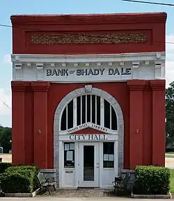 Shady Dale was founded ca. 1880 on the site of a former Creek Indian settlement.[4] The name "Shady Dale" was descriptively applied.[5]