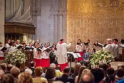 The music program, under the direction of Dr. Mark A. Anderson, is renowned for its semi-professional Chancel Choir, four-manual Reuter pipe organ, and celebrated concert series, Music in a Great Space. Several album recordings are available through the church office.