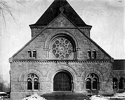 In the late 1880s, the second building was deemed too small for the growing congregation. Underground seepage of water from springs in the hillside caused some of the walls and tower to be determined unsafe. On April 8, 1888, the second church was declared unsafe for use and the congregation voted to replace the structure with a new church and chapel, engaging the firm Shepley, Rutan and Coolidge of Boston.[5]