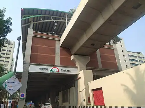 Shahbag (Bengali: শাহবাগ, romanised: Shahbag) is a metro station of the Dhaka Metro's MRT Line 6 in Bangladesh. This station is located in the area and thana of Shahbagh. The station has been in service since 31 December 2023.[2]