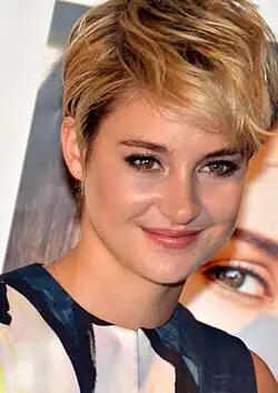 Also in 2014, Woodley starred as Hazel Grace Lancaster in The Fault in Our Stars, the film adaptation of John Green's novel of the same name. She portrayed a 16-year-old cancer patient who meets and falls in love with Augustus Waters (Ansel Elgort, who also played her brother in the Divergent series), a similarly affected teen from her cancer support group. Green said via Twitter about Woodley; "There were so many amazing auditions for the role of Hazel, but Shailene's love for the book and her understanding of Hazel blew me away."[39] The film was a blockbuster success, grossing over $307 million worldwide.[40] Woodley's performance received critical acclaim; Peter Travers in Rolling Stone called her a "sublime actress with a résumé that pretty much proves she's incapable of making a false move on camera",[41] and Richard Roeper of Chicago Sun-Times called her performance as Hazel Oscar-worthy, adding, "she's that memorable".[42] On November 14, 2014, she received The Hollywood Film Award for Hollywood Breakout Performance – Actress for her depiction of Hazel.
