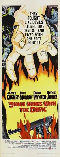 Shake Hands with the Devil is a 1959 British-Irish film produced and directed by Michael Anderson and starring James Cagney, Don Murray, Dana Wynter, Glynis Johns and Michael Redgrave.[4] The film was written by Marian Spitzer based on the 1933 novel of the same title by Rearden Conner, the son of a Royal Irish Constabulary policeman.