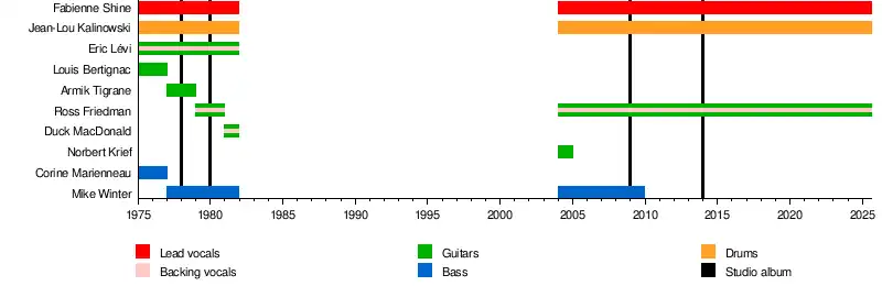 - Eric Lévi – guitars, vocals (1975–1981)