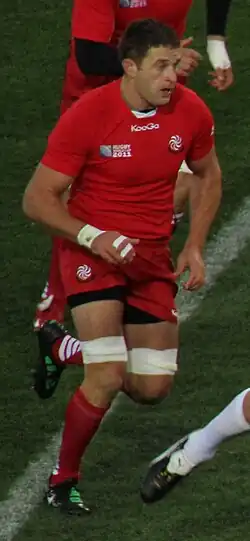 He has 72 caps for Georgia, with 2 tries scored, 10 points on aggregate. He had his first game at 12 November 2005, in the 29–6 win over Chile, in Tbilisi, for the Intercontinental Cup. He was 21 years old. He missed the 2007 Rugby World Cup but would be called for the 2011 Rugby World Cup and 2015 Rugby World Cup, he played 5 games in the world cup. He is a regular player for the Georgia side that qualified for the 2015 Rugby World Cup.[2]