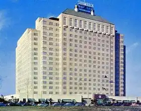 The Shamrock was a hotel constructed between 1946 and 1949 by wildcatter Glenn McCarthy southwest of downtown Houston, Texas next to the Texas Medical Center. It was the largest hotel built in the United States during the 1940s.[1] The grand opening of the Shamrock is still cited as one of the biggest social events ever held in Houston.[2] Sold to Hilton Hotels in 1955 and operated for over three decades as the Shamrock Hilton, the facility endured financial struggles throughout its history. Hilton Hotels sold the hotel to the Texas Medical Center in 1985 and was demolished in 1987. The former hotel site is now campus locations for Texas A&M Institute of Biosciences and Technology and DeBakey High School for the Health Professions.