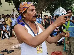 ![]() Shamsudheen performing a magic trick in Kollam, April 2019 | |