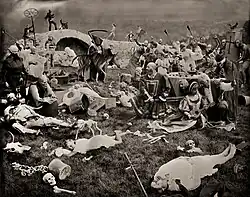 On July 17, 2021 more than 100 collaborators came together at the University of Mary’s Marian Grotto in Bismarck, North Dakota to create one of the largest wet-plate photographic collaborations in history. The final image, called 'No Vaccine for Death' was inspired by the painting 'Triumph of Death' by Pieter Bruegel the Elder, circa 1562.[82][83][84]