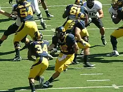 In 2008, he served as the primary backup to Jahvid Best as part of the Golden Bears' two running back system, playing in all of the team's 13 games.[4] In the season opener against Michigan State, he rushed for 101 yards and a touchdown.[5] The game marked the first time that two Cal running backs had completed over 100 yards rushing since the 2006 Holiday Bowl, with Best tallying 111 yards in the victory.[6] For the season, he rushed for 715 yards and 4 touchdowns, along with 27 catches for 221 yards and a touchdown.[7]