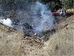 On September 11, 2001, the Shanksville Volunteer Fire Department responded to the United Airlines Flight 93 crash scene to search for survivors.[2] They found a smoking crater 8 feet (2.4 m) to 10 feet (3.0 m) deep, and 30 feet (9.1 m) to 50 feet (15 m) wide.[3] None of the 44 people on board survived.[4] Flight 93 was one of four airliners hijacked that day as part of the al-Qaeda terror attack on the United States. It is widely held that the Flight 93 hijackers intended to use the aircraft to attack the United States Capitol building in Washington, DC.[5]