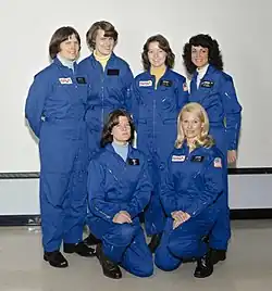 As one of 208 finalists,[17] Lucid was invited to come to the Johnson Space Center (JSC) in Houston, Texas, for a week of interviews, evaluations and examinations, commencing on August 29, 1977. She was part of the third group of twenty applicants to be interviewed, and the first one that included women. The eight women in the group included Rhea Seddon, Anna Sims, Nitza Cintron and Millie Hughes-Wiley.[18] On January 16, 1978, NASA announced the names of the 35 successful candidates, of whom 20 were mission specialist candidates.[17] Of the six women in this first class with female astronauts, Lucid was the only one who was a mother at the time of being selected.[19] George Abbey, the Director of Flight Crew Operations at JSC and the chairman of the selection panel,[17] later stated that this was not taken into consideration during the selection process.[6]
