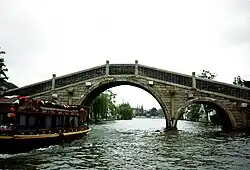 Shantang Street (Chinese: 山塘街; pinyin: Shāntáng Jiē; Suzhou Wu: Se daon ka, Wu Chinese pronunciation: [se̞ dɑ̃ kɑ]), also known as Seven-li Shantang (Chinese: 七里山塘), is a street in northwestern Gusu District, Suzhou, Jiangsu, China. The street connects Changmen (Chinese: 阊门) in the east with Huqiu in the west, with a total length of about 3,829.6 meters (2.38 miles),[1] or a little more than seven li or traditional "Chinese miles".[2] Due to the great history and events involving Shantang Street it is sometimes stated as being the "First Street in Shuzou".[3]