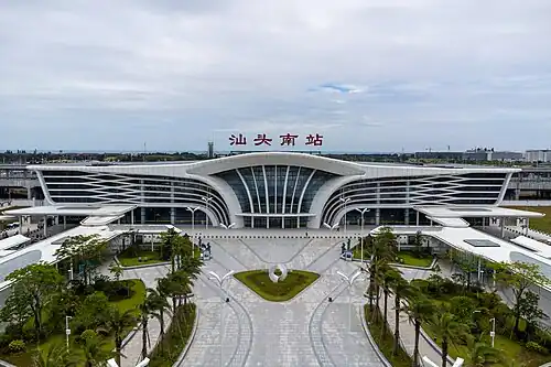 Shantou South railway station (Chinese: 汕头南站) is a railway station in Longhu District, Shantou, Guangdong, China. It is an intermediate stop on the Shantou–Shanwei high-speed railway.[1]