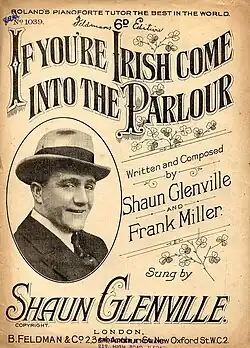 Glenville wrote several songs with his and Ward's friend, Fred Godfrey. It is believed that Glenville also performed them but he recorded just two, both in 1915: 'Where Did You Get The Name Of Hennessy?' (Regal G-7607) and 'The Yiddisher Irish Baby' (Levi, Carney, Jacob, Barney, Michael Isaacstein) (Regal G-7221). Various extant sheet music covers and other sources show that Glenville performed at least five other Godfrey songs on stage: 'When An Irishman Goes Fighting' (1914); 'Tommy's Learning French' (sung at a concert in France for the troops in June 1915 during World War I); 'Calling Me Home' (1922); 'My Little-Da-Monk' (1930); and 'It Takes An Irish Heart To Sing An Irish Song' (1932).[12][13]