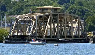 Shaw's Cove Bridge is a swing bridge in New London, Connecticut built in 1984, replacing a similar bridge built in 1913. The span carries railroad tracks used by Amtrak for their train along the Northeast Corridor while allowing boat traffic to go through.