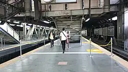 The station's main platforms consist of two island platforms with the outer sides serving the northbound and southbound tracks respectively, and the inner side serving the single reserve track. The platform space for the reserve track also doubles as additional platform space for commuters embarking and disembarking the trains during peak hours.