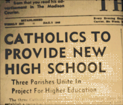 That same year, the first freshman class of Madison Central Catholic High School (the temporary name) began lessons ranging from Calculus to Biology in the St. Michael's school building. The high school building, which was planned to be built on the hilltop of Madison, was not yet built.[6]