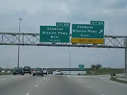 | Mission | 10.1 | 16.3 | Interchange, eastern end of US 69 concurrency | ||