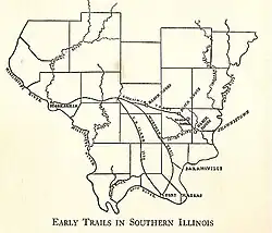- ^ Kaskaskia–Shawneetown and Goshen Trails (Historical marker). Illinois State Historical Society. Retrieved March 14, 2016.