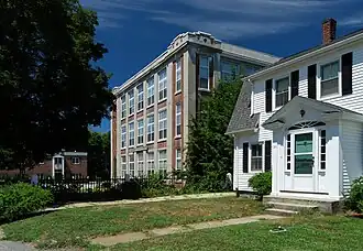 Shawsheen Village Historic District is a historic district in northern Andover, Massachusetts. Shawsheen Village was completed in the early 1920s as a planned corporate community. Conceived by William Madison Wood of the American Woolen Company, the village was designed a team of architects including Adden & Parker, Clifford Allbright and Ripley & LeBoutillier of Boston and James E. Allen of Lawrence. John Franklin, a civil engineer for the American Woolen Company was responsible for designing the village, under the direction of Wood. Buildings from the original Frye Village were also incorporated into the design which included a railroad station, shops, apartment buildings, factories, parks and numerous single-family dwellings.[2] The village was located just up the road from the Company's main factories in nearby Lawrence.