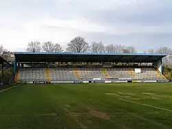 The South Stand, also a terraced stand, is generally where the home fans stand, originally being used as the away stand. The stand has a bar in its concourse and catering facilities are situated outside.