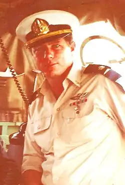 McGonagle observed that machine gun Mount 53 began firing at the center torpedo boat at about the same time gun mount 51 fired, and that its fire was "extremely effective and blanketed the area and the center torpedo boat".[12]: 39 Machine gun mount 53 was located on the starboard amidships side, behind the pilot house.[12]: 16 McGonagle could not see or "get to mount 53 from the starboard wing of the bridge".[12]: 39 So, he "sent Mr. Lucas around the port side of the bridge, around to the skylights, to see if he could tell [Seaman] Quintero, whom [he] believed to be the gunner on Machine gun 53, to hold fire".[12]: 39 Lucas "reported back in a few minutes in effect that he saw no one at mount 53".[12]: 39 Lucas, who had left the command bridge during the air attack and returned to assist McGonagle,[12]: 14 believed that the sound of gunfire was likely from ammunition cooking off, due to a nearby fire.[12]: 16 Previously, Lucas had granted a request from Quintero to fire at the torpedo boats, before heat from a nearby fire chased him from gun mount 53.[12]: 26, 27 McGonagle later testified, at the Court of Inquiry, that this was likely the "extremely effective" firing event he had observed.[12]: 49