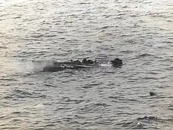The torpedo boats then closed in and strafed the ship's hull with their cannons and machine guns.