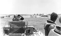 The assault on Sharm el-Sheikh was to be carried out by paratroopers but as it was not clear whether the Egyptian artillery position in the area which was weak was manned or not. So torpedoes had to accompany the assault. When the torpedoes reached there it became evident that the positions were deserted. So the personnel of the torpedoes themselves took control and hoisted the Israeli flag.[15] So the Paratrooper assault was cancelled and forces were transported via helicopters. Furthermore, two Egyptian commando vessels were spotted by the torpedoes after capturing Sharm el-Sheikh, the vessels were unarmed but carried 33 commandos who were taken captive.[16]
