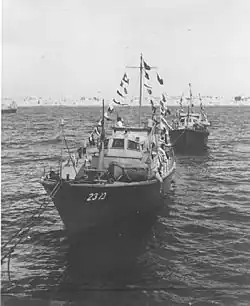 During the 1948 Arab–Israeli War, the Israeli Navy acquired a World War II-era German torpedo boat captured by the United States, purchasing it for $9,000. The vessel sank en route to Israel near Malta.[1] In 1949, an unarmed torpedo boat joined the "Small Flotilla," a unit including British-surplus patrol vessels and landing craft (later reorganized as Shayetet 11). By 1950, 12 additional torpedo boats were acquired: eight WWII-era vessels from the United Kingdom and four modern French boats. The unit was formally renamed Shayetet 5 in 1952.