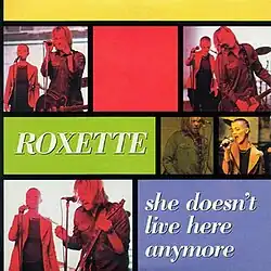 "She Doesn't Live Here Anymore" is a song by Roxette, released as the fourth and final single from their greatest hits compilation Don't Bore Us, Get to the Chorus! Roxette's Greatest Hits (1995). The song had originally been written and recorded for the duo's 1994 studio album Crash! Boom! Bang! but, according to Marie Fredriksson, that version "sounded really tired", and has yet to be released. It was later re-recorded in July 1995 with members of Per Gessle's former band Gyllene Tider. It is the only song in Roxette's discography to not be produced by Clarence Öfwerman.[2] "She Doesn't Live Here Anymore" was only released in Germany, Italy and the Netherlands, also in Hungary, in the Czech Republic [3] peaking at number 86 on the German Singles Chart.[4] The single included two remixed versions of "The Look" as b-sides. Its music video was directed by Jonas Åkerlund.[5]
