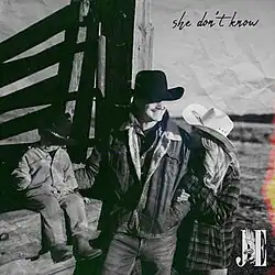 "She Don't Know" is a song recorded by Canadian country artist Jade Eagleson. The song was written by James Barker, Jonathan Singleton, and Travis Wood, while Wood produced the track with Todd Clark.[1] It is the third single from his second album Honkytonk Revival.[2]