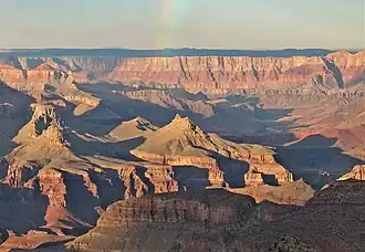 | Rock type(s) | Redwall Limestone-(extreme cliff-erosion-remnants) Muav Limestone, Tonto Group-(3-units) 3_Muav Limestone, 2_Bright Angel Shale, 1_Tapeats Sandstone, Unkar Group units (3 of 5) 3_Shinumo Quartzite, 2_Hakatai Shale |