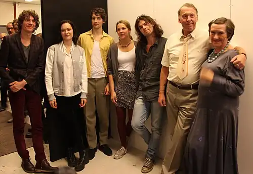 Håkan Hellström, together with the actors from the film. From the left: Håkan Hellström, Disa Östrand, Adam Lundgren, Josefin Neldén, Jonathan Andersson, Tomas von Brömssen and Gunilla Nyroos.