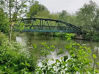 Sheep's Green Bridge is a footbridge over the River Cam in Cambridge, England. It is the second bridge on the river as it flows into Cambridge.[1] It connects Coe Fen near Sheep's Green and Lammas Land. The bridge was opened in 1910 to replace the chain ferry taking ladies over to the bathing place on Sheep's Green.[2] After deterioration in the bridge's condition[3] it was reconstructed in 2006, the decking was relaid and the steps were replaced with ramps.[4]