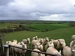 In the 1840s, the hills of Montgomeryshire included flocks from the low country. Towards the south and west, a smaller white-faced breed was more prevalent while in the north-east a black-faced native breed was found. The breed in the valleys had been improved, principally by sheep from Shropshire. The sheep on the higher grounds weighed about 10 lbs. the quarter, while those in the valleys weighed 12 to 14 lbs. The lambing season at that time was in March and lambs were shorn in August.[9] There were fewer sheep in Denbighshire and Flintshire, particularly in Flintshire, than in any of the other counties, and these were mixed with English breeds. Their weight varied between 10 and 20 lbs. per quarter, and the fleece from 2 to 5 lbs.[9]