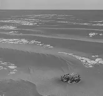 ![]() Shelter Island meteorite viewed by the Opportunity rover (October 3, 2009). | |