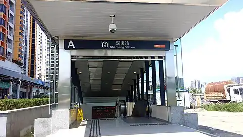Shenkang station (Chinese: 深康站; pinyin: Shēnkāng Zhàn; Jyutping: sam1 hong1 zaam6) is a station of Shenzhen Metro Line 2. It opened on 28 June 2011.