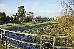 The hall has a fine gatehouse dated 1629, and a large, listed dovecote of 1719 within the hall grounds, close to the stable block.[6] The main hall is a Grade II* listed building[7] and was enlarged in the 19th century.[8] The hall itself was sold by the Wollaston family following government requisition during the Second World War, but most of the estate land in the settlement and the surrounding farmland, was not sold.