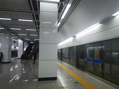 Shenzhen Airport North railway station (simplified Chinese: 深圳机场北站; traditional Chinese: 深圳機場北站; pinyin: Shēnzhèn Jīcháng Běi Zhàn; Jyutping: Sam1zan3 Gei1coeng4 Bak1 Zaam6) is a railway station in Bao'an District, Shenzhen, Guangdong, China. It opened on 15 December 2019.[1][2] It is a supporting station for the planned Terminal T4 of Shenzhen Airport.[3]