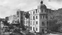 The hotel was originally established in 1841 by Samuel Shepheard under the name "Hotel des Anglais" (English Hotel),[1][2] and was later renamed "Shepheard's Hotel".[3] Shepheard, an Englishman who was once described as "an undistinguished apprentice pastry chef",[4] came from Preston Capes, Northamptonshire. He co-owned the hotel with Mr. Hill, Mohammed Ali Pasha's head coachman, and proved to be a successful entrepreneur and businessman. On one occasion, when soldiers staying at the hotel were suddenly moved to Crimea, leaving unpaid bills, Shepheard travelled personally to Sevastopol in order to collect payment.[1]