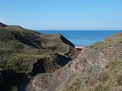 This chine is one of the largest on the Isle of Wight. It starts at the side of the A3055 Military Road and runs west for about 500m to reach the beach at Brighstone Bay just to the north of Atherfield Point.