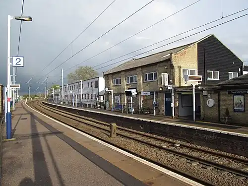 Platform 2 (for trains to Cambridge) was extended in Summer 2017 to be able to accommodate 8-car trains (including Class 700 units), without straddling the level crossing.[4] Although platform 1 was not lengthened, 8-car trains now call there using Selective door operation which opens the doors on the front four carriages only.[5]