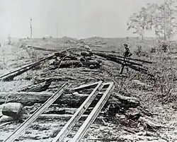 In the early days of the Franklin-Nashville Campaign of late 1864, the Confederates employed similar tactics against Sherman's supply line, the Western and Atlantic Railroad from Chattanooga to Atlanta. The rails deformed by fire were known to the soldiers of the Army of Tennessee as "Old Mrs. Lincoln's Hair Pins."[3]