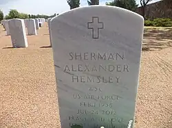 A Philadelphia man named Richard Thornton claimed to be Hemsley's brother and the true heir to his estate. After contesting the will, Thornton halted progress on funeral arrangements, and as a result, Hemsley's body remained at the San Jose Funeral Home in El Paso and unburied for months.[22] On November 9, 2012, the legal battle over Hemsley's body ended when Judge Patricia Chew ruled in favor of Enchinton.[23] A military funeral was planned for Hemsley. He was interred at Fort Bliss National Cemetery in his adopted hometown of El Paso.[24]