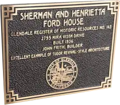 ![]() Sherman and Henrietta Ford House, Glendale, CA - Monument #143 | |