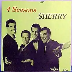 "Sherry" drew the attention of WPOP in Hartford, Connecticut, a radio station known for its aggressive seeking out of new hit records; WPOP overnight host Joey Reynolds soon placed the record into heavy rotation.[16] Shortly thereafter, "Sherry" became the band's first nationally released single and their first number one hit, reaching the top of the U.S. Billboard Hot 100 on September 15, 1962. It remained at number one for five consecutive weeks, and number one on the R&B charts for one week.[17] "Sherry" became the first single by The Four Seasons to go to number one on the R&B charts.