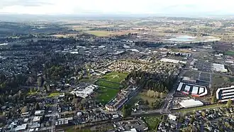 Sherwood is a city in Washington County, Oregon, United States. Located in the southeast corner of the county, it is a residential community in the Tualatin Valley, southwest of Portland. The population was 20,450 at the 2020 census.[4] Sherwood was first incorporated in 1893 as a town. Originally named Smockville after its founder, James Christopher Smock, the town was given its current name by local businessman Robert Alexander in 1891. The name "Sherwood" may have come from Sherwood, Michigan or the Sherwood Forest in England.